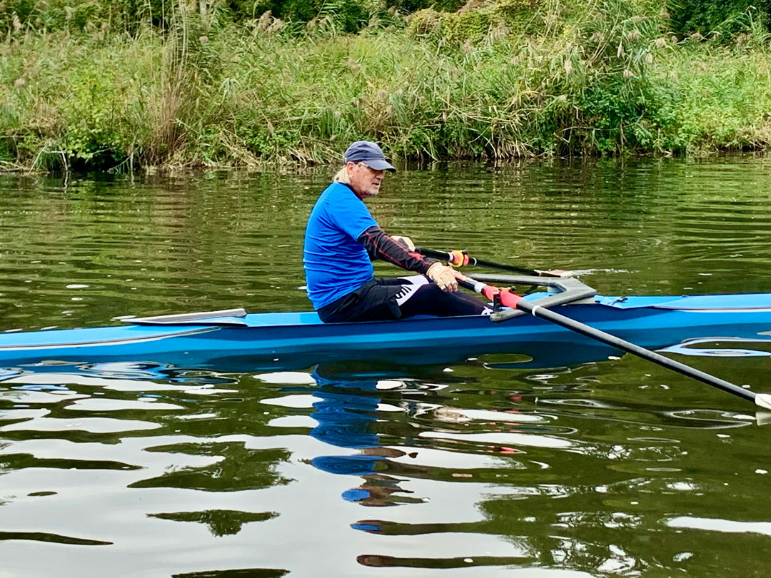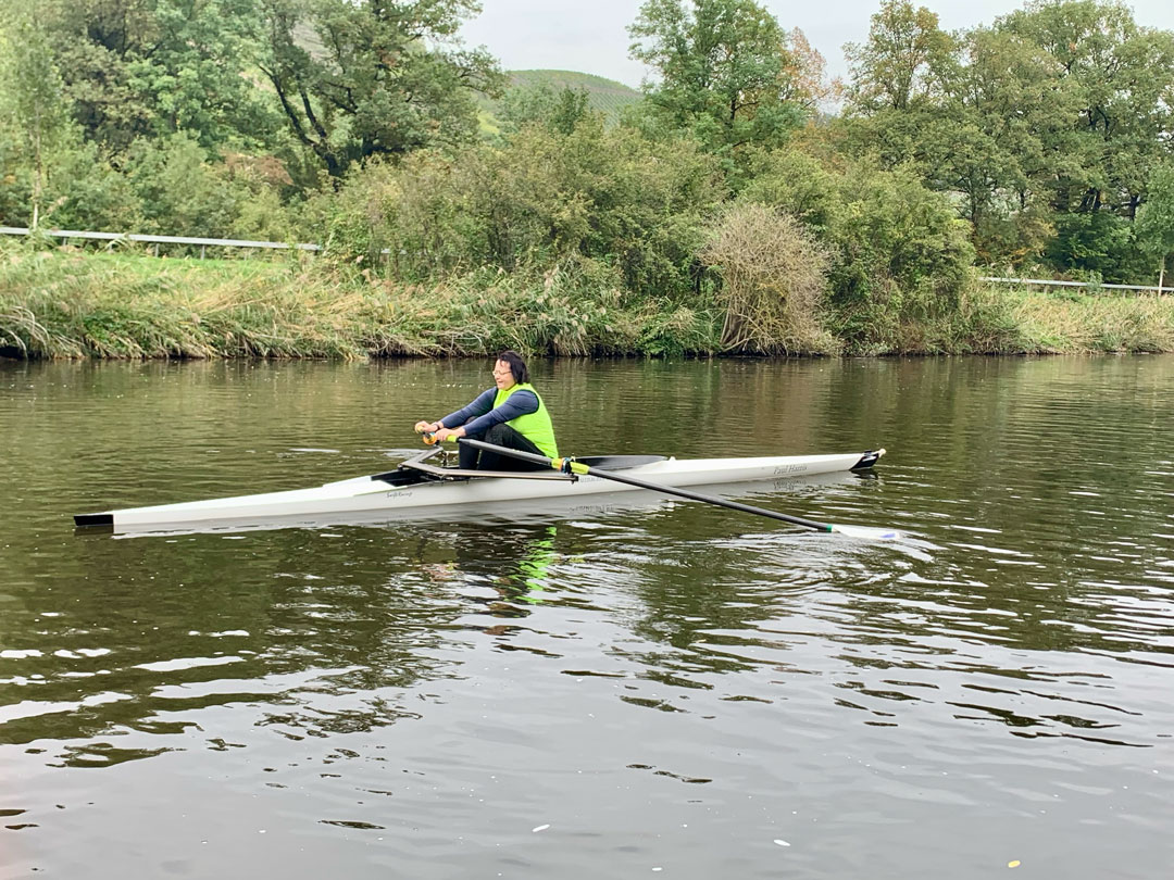 Frisch gestärkt ging es dann an die Videoanalyse - gemeinsam haben wir uns die Videoclips der einzelnen Boote angesehen und wertschätzend und konstruktiv analysiert. Unseren Masters ist es gelungen, anhand der Videoausschnitte jedem ein Feedback zu geben und herauszuarbeiten, woran jeder einzelne und wir Breitensportler gemeinsam noch arbeiten können. Nach der Mittagspause ging es erstmal an die Einstellungen - hier konnten viele von uns noch etwas optimieren. Martina probierte, auch dank Klaus’ Hilfe, ein Tiefeinsteigerboot aus dem CRV - die Einstellung auf Martina war hier kein Problem, jedoch sahen weder unsere Ruderwartin, noch unsere Masters im Fahrgefühl einen Zugewinn, so dass beschlossen wurde, lieber weiter an den Einstellungen der vorhandenen Einerboote zu feilen. Wieder auf dem Wasser gelang es uns, jeweils die ersten Tipps umzusetzen und eine oder zwei Abschlussrunden zu drehen. Nachdem alle wieder glücklich an Land und die Boote sauber und trocken im Lager waren, haben wir uns zum Abschluss im Bootshaus getroffen.